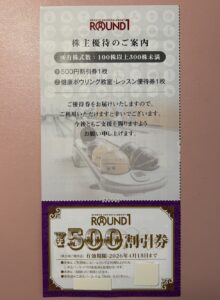 ラウンドワン(4680)の株主優待が到着!ボウリング・カラオケ等の利用料が500円引き🎤