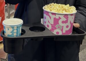 画質悪いですが、無料でいただいたジュースとホップコーンです。ホップコーン無料にしては量が多いのでシェアするのがおすすめです!