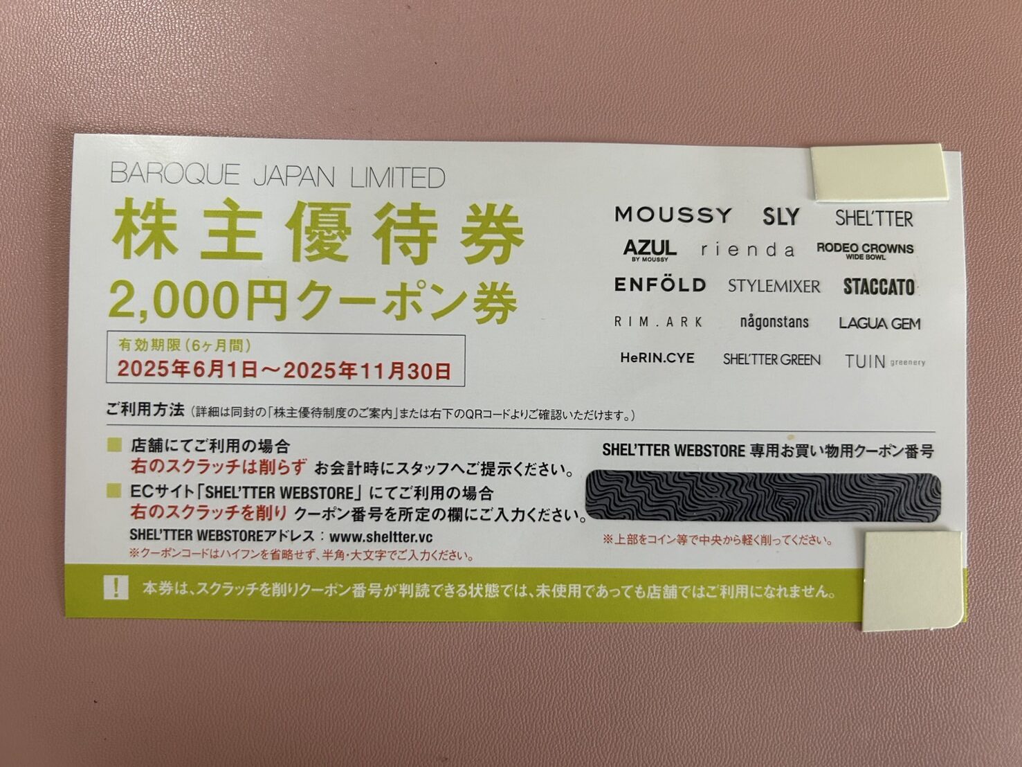 バロックジャパンリミテッド(3548)の株主優待が届いたのでご紹介します!