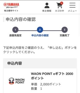 ヤマハ発動機の株主優待は、カタログギフトに使用できるポイントです。