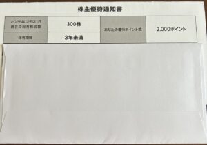 筆者は300株保有で、2,000ポイントいただきました!
